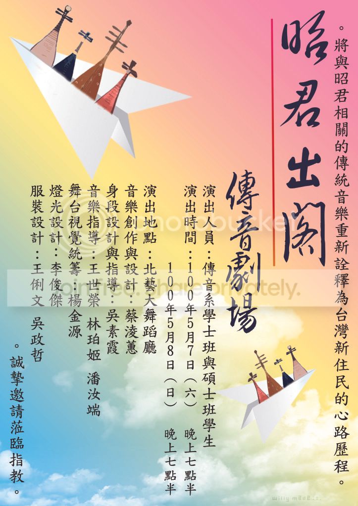 理所當然的溫柔的被駁回雖說無奈但也沒什麼好說的,只好再去更詳細的詢問作曲家也就是蔡淩蕙老師的訴求後,才製作出這樣的讓認識我的人都驚呼這不是出自我手的,昭君出閣。